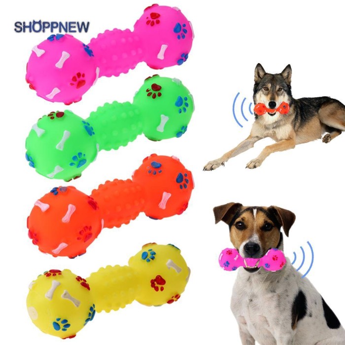 Jual Stock Dog Toys Dotted Dumbbell Shaped Dog Squeeze Squeaky